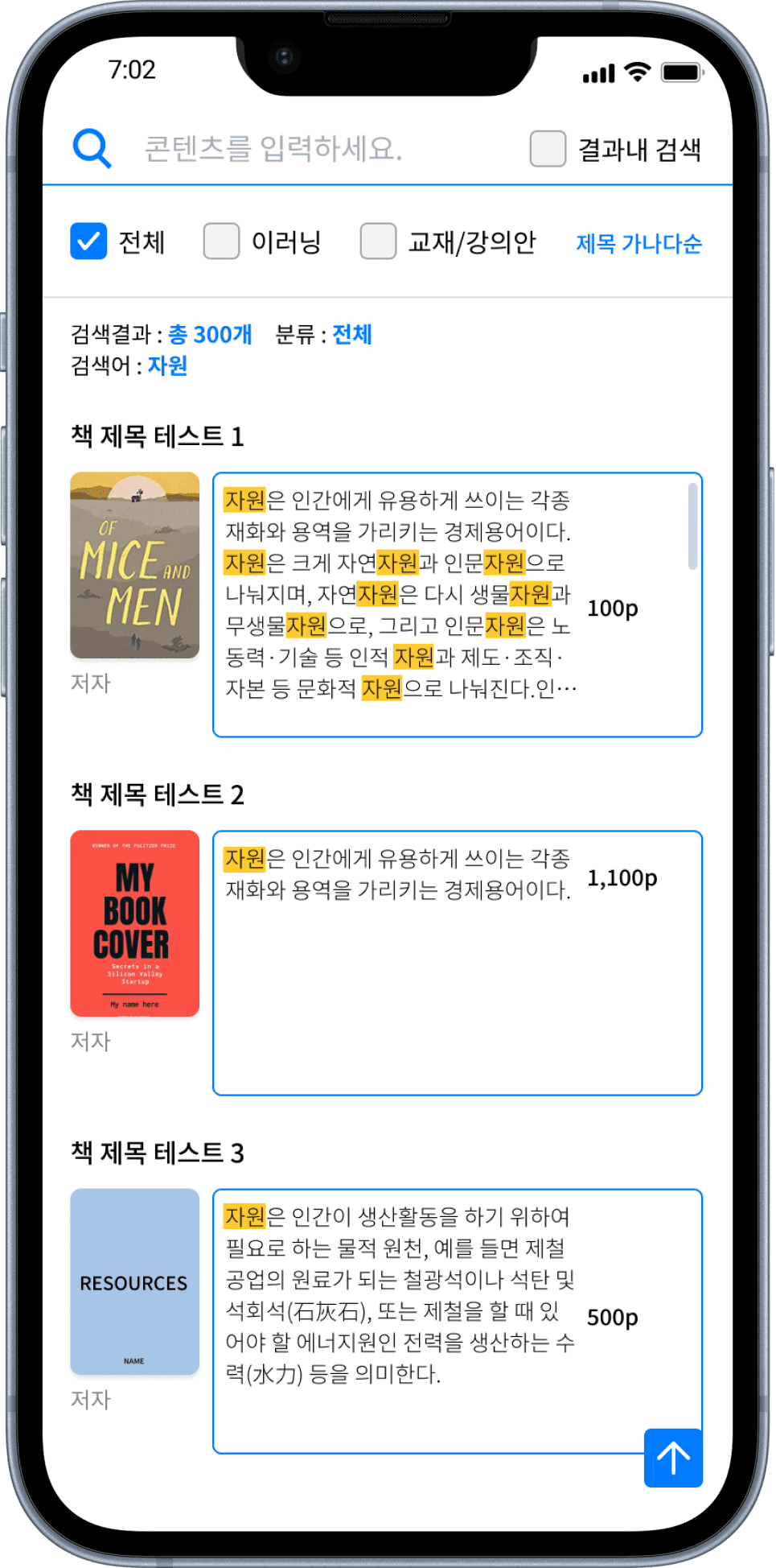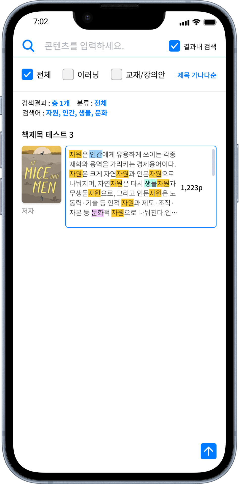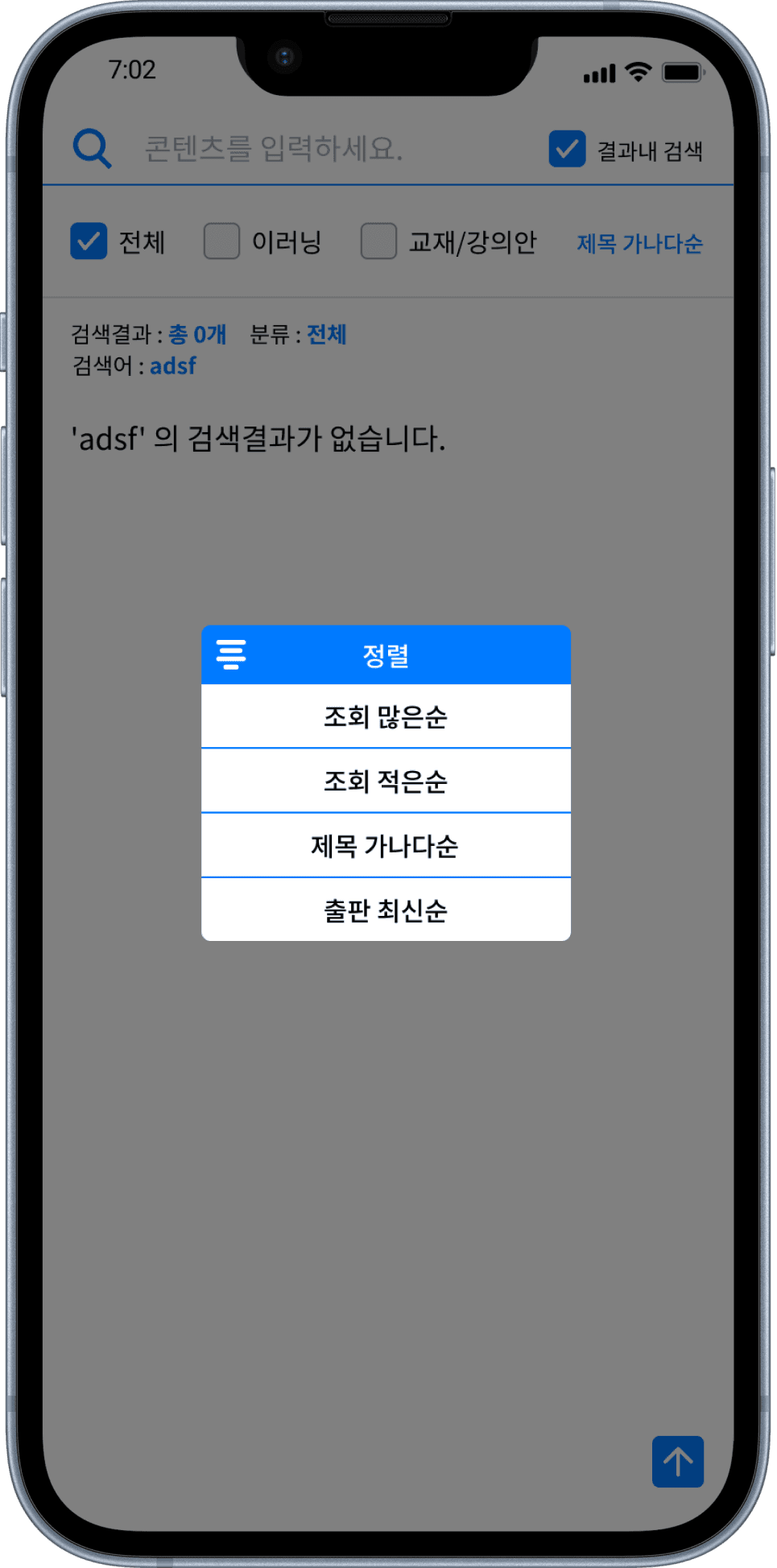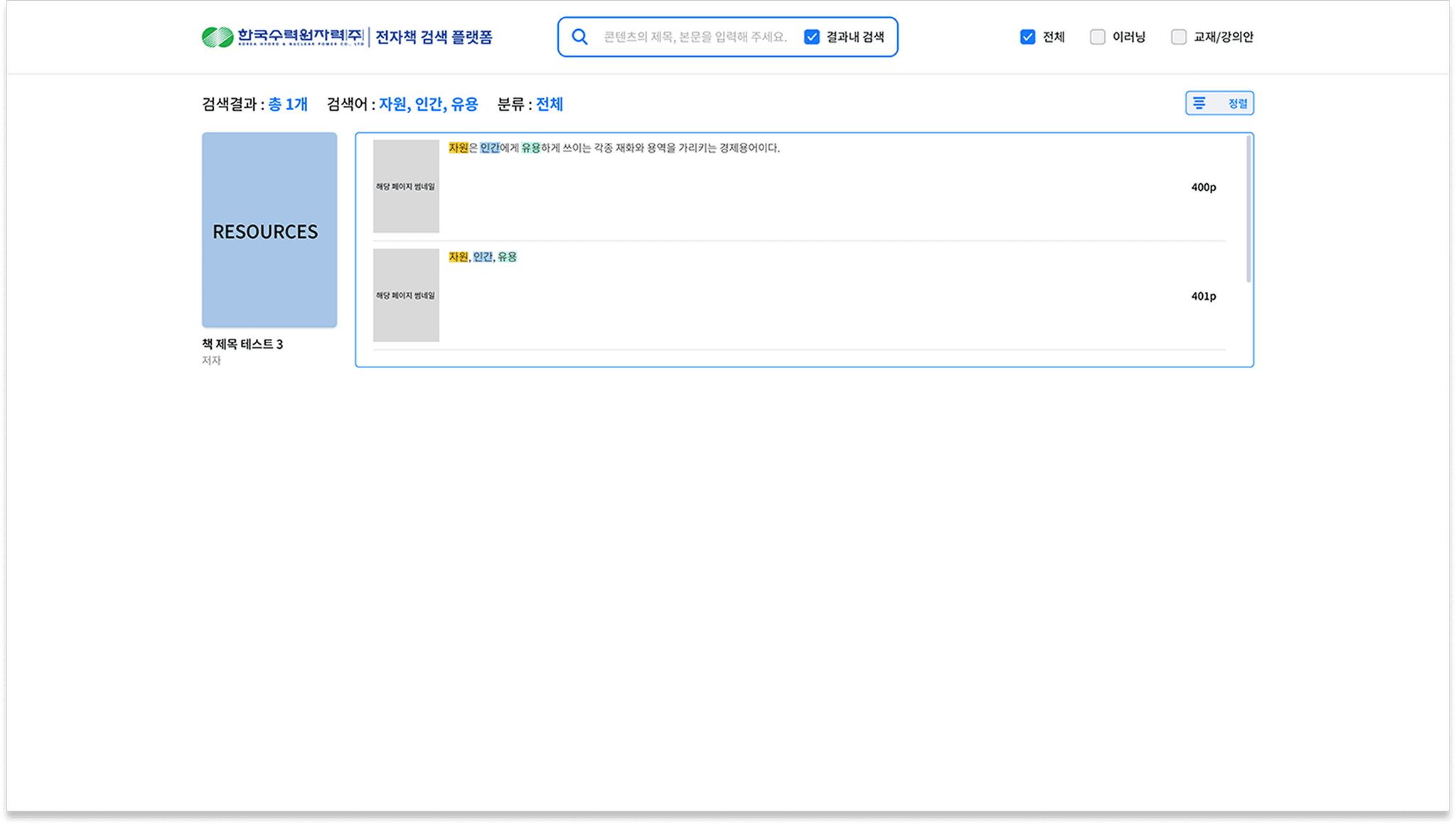 유저는 결과 내 검색을 통해 단어를 입력 하여 찾고자 하는 콘텐츠를 정확히 검색할 수 있습니다.
