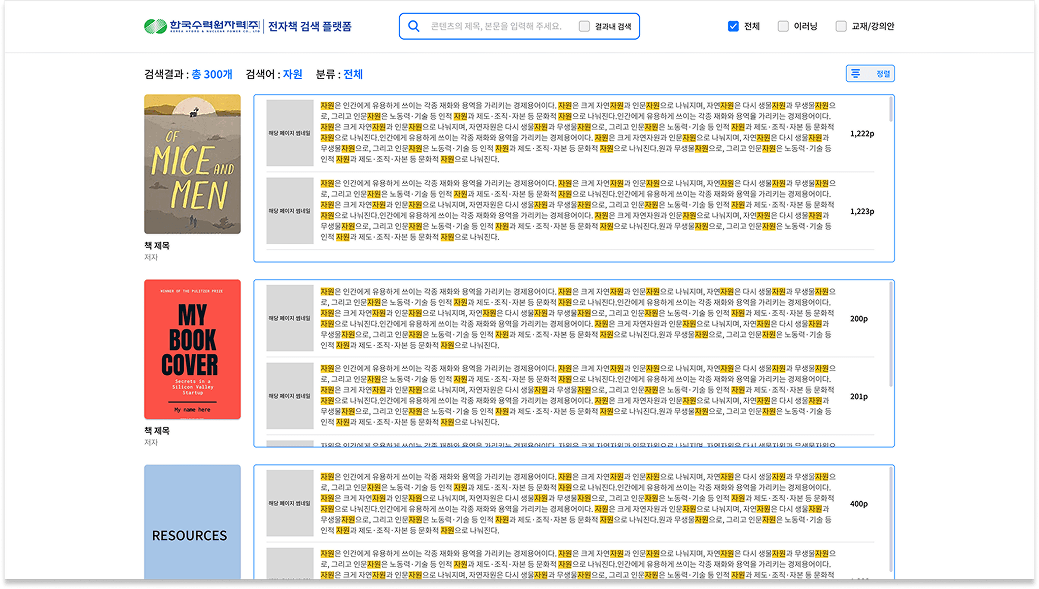 업로드되는 다양한 확장자의 콘텐츠는 OCR 기반으로 마이그레이션되어 현재의 플랫폼에서 적절한 DB화가 이루어지며, 추후 AI 도입 시 활용 가능하도록 설계하였습니다. 약 2만 개의 콘텐츠 중 필요한 콘텐츠만 찾을 수 있도록 자사에서 개발한 검색엔진을 적용했습니다.
